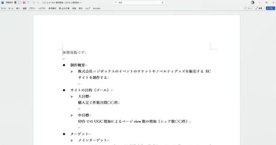 STEP0で整理したゴール、ターゲット、要求をもとに、ここからAIを活用していきます。まずは、より詳しい要件定義へと落とし込んでいくところから始めましょう。