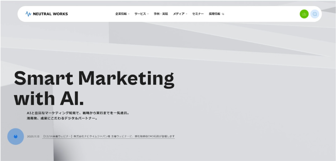 株式会社ニュートラルワークスは、3,000社を超える圧倒的な支援実績を背景に、ビジネスの成功に直結するWebサイト構築を得意とするデジタルマーケティングカンパニーです。