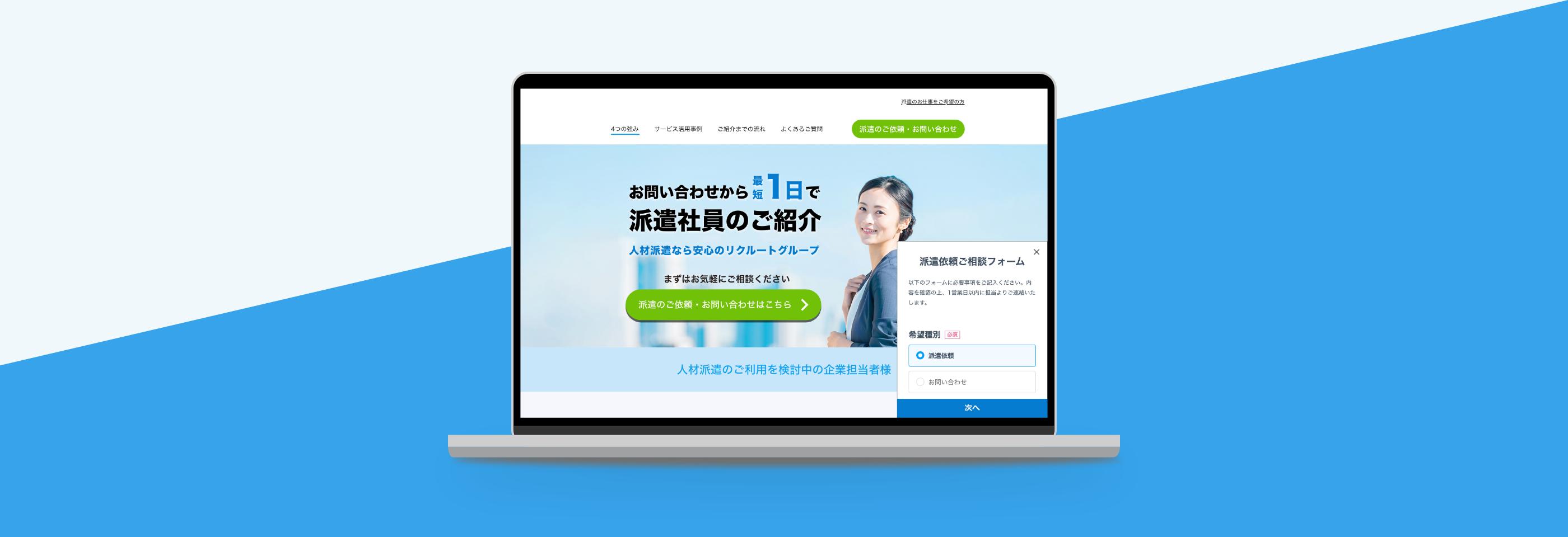 リクルートスタッフィング様は、ランディングページ(LP)を活用した、自社派遣社員紹介サービスへの集客を実施されており、その改善を検討されていました。